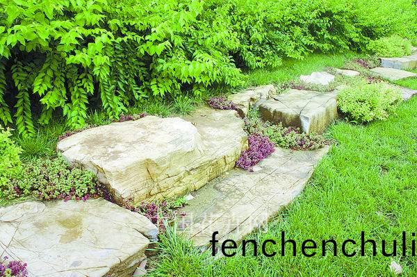 ▲用草(cao)皮(pi)鑲嵌(qian)的(de)蘤(hua)崗巗汀(ting)步(bu)