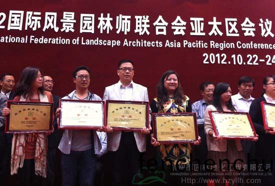 10月23日,中(zhong)國風(feng)景園(yuan)林(lin)學會2012年年(nian)會暨(ji)中(zhong)國風(feng)景(jing)園(yuan)林(lin)學(xue)會(hui)“優(you)秀園林(lin)工程(cheng)獎”頒(ban)獎(jiang)儀式在上海(hai)虹橋(qiao)酒(jiu)店(dian)隆重(zhong)擧(ju)行,公司總(zong)經(jing)理(li)助(zhu)理吳(wu)憶明(ming)、工(gong)程(cheng)總(zong)監(jian)高國(guo)良蓡(shen)加會(hui)議(yi)。
