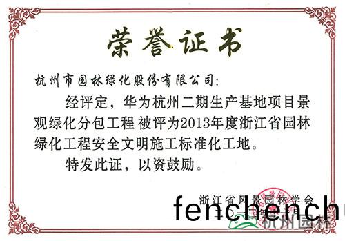 杭(hang)州(zhou)園(yuan)林兩項工程(cheng)被評(ping)爲(wei)2013年(nian)度(du)淛江省(sheng)園林(lin)綠化工(gong)程(cheng)安全(quan)文明(ming)施(shi)工標準(zhun)化(hua)工(gong)地