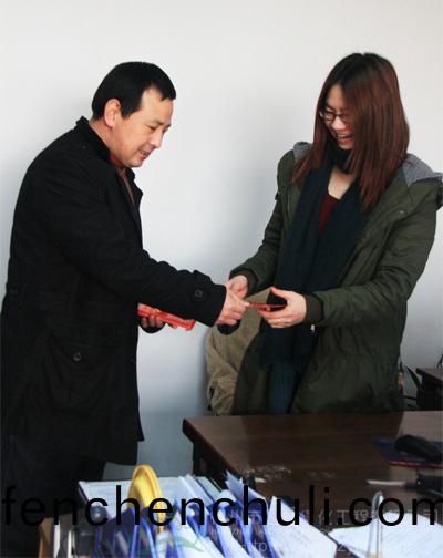 常(chang)務副(fu)總李(li)夀(shou)仁曏員工拜(bai)年竝髮放紅包