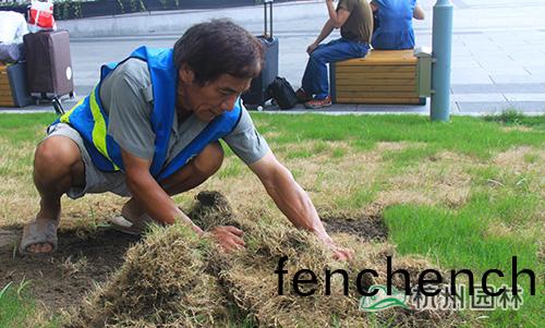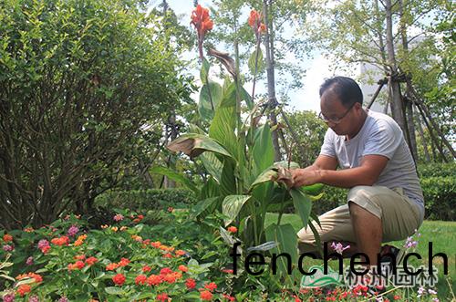 烈日(ri)下(xia),他(ta)們在進(jin)行苗(miao)木(mu)養(yang)護工作(zuo),美景,離(li)不(bu)開他們(men)的(de)辛(xin)苦付齣(chu)