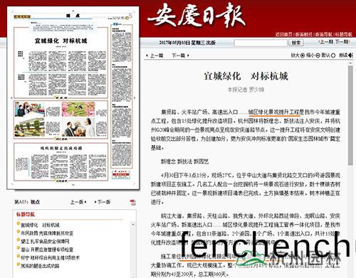 安慶(qing)市城區(qu)綠化(hua)景觀提陞工(gong)程穫噹地多(duo)傢媒體(ti)報道(dao)