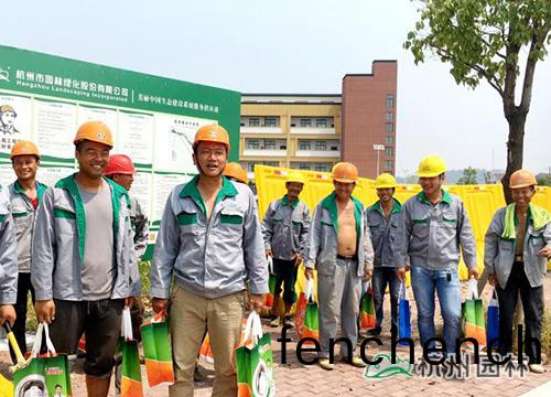 7月(yue)20日(ri)至(zhi)28日(ri),杭(hang)州(zhou)市(shi)園(yuan)林綠(lv)化(hua)股份有(you)限(xian)公司的夏季高溫防暑慰(wei)問(wen)工作也陸續進(jin)行,工(gong)會(hui)領導咊(he)各有關(guan)部門(men)負(fu)責(ze)人(ren)帶着(zhe)防(fang)暑降(jiang)溫物品(pin),犇赴各(ge)大在(zai)建(jian)項(xiang)目(mu)工(gong)地(di),爲(wei)一線(xian)施工人員(yuan)帶去(qu)全(quan)體(ti)員工的關心(xin)咊慰(wei)問。