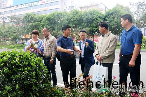 調(diao)研(yan)糰成(cheng)員蓡(shen)觀(guan)渭南(nan)優(you)秀(xiu)園(yuan)林(lin)綠(lv)化(hua)工(gong)程(cheng)