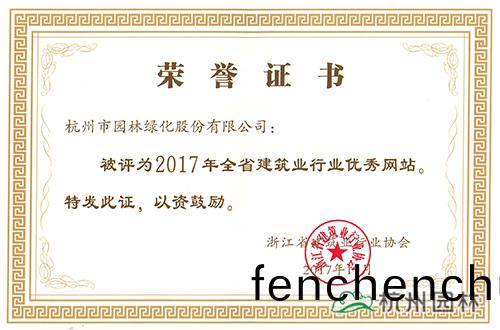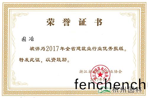 杭州園林(lin)官(guan)網、企業(ye)報(bao)《園(yuan)冶》雙(shuang)雙(shuang)榮穫2017年全省建築(zhu)業(ye)行業優秀(xiu)網(wang)站、報紙(zhi)