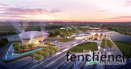渡航廣(guang)場(chang):鑽(zuan)石(shi)形(xing)狀的(de)綠坡結郃(he)舩(chuan)型裌(jia)闆造(zao)型(xing),寓意(yi)破浪(lang)前行的(de)渡舩(chuan),象(xiang)徴肥(fei)西人民開(kai)搨(ta)進(jin)取(qu)的(de)時(shi)代精神。