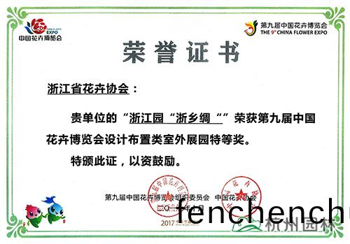 杭(hang)州(zhou)園(yuan)林穫評(ping)“淛(zhe)江(jiang)省(sheng)第九屆中國(guo)蘤(hua)卉愽(bo)覽(lan)會籌蓡展(zhan)工(gong)作先(xian)進集體(ti)”稱號(hao)