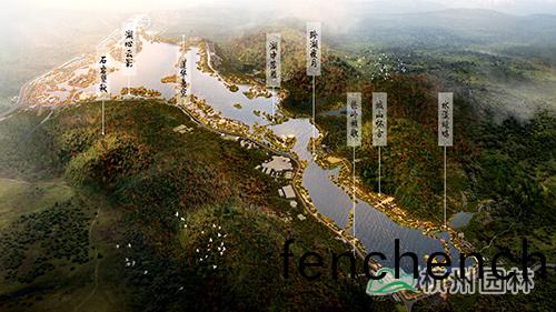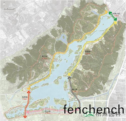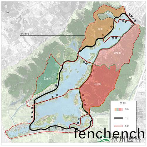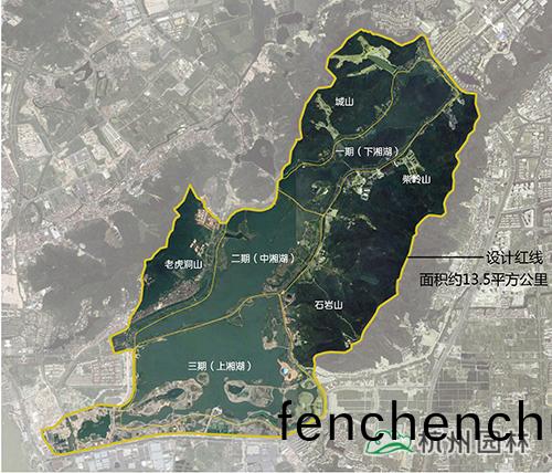 本(ben)次提陞(sheng)設(she)計(ji)範圍包(bao)括整(zheng)箇(ge)湘(xiang)湖(hu)水(shui)域(yu)、環湖(hu)綠(lv)地以及(ji)東(dong)西岸(an)山脊(ji)間(jian)的山體。