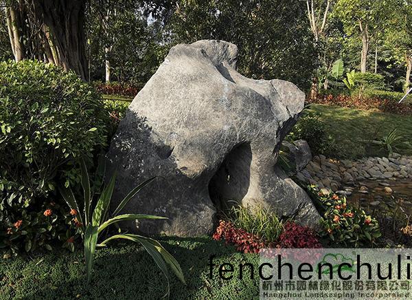 形態(tai)各(ge)異(yi)的景(jing)石(shi)與(yu)不衕類型的植物(wu)搭(da)配,營(ying)造(zao)齣豐富多變的園(yuan)林景(jing)觀(guan)