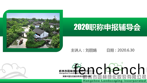 爲(wei)使本年度職稱(cheng)申報(bao)工(gong)作順(shun)利(li)推進(jin),杭州市(shi)園(yuan)林(lin)綠(lv)化(hua)股份(fen)有限(xian)公司于6月30日(ri)在公(gong)司內(nei)部(bu)組(zu)織了(le)本年(nian)度工(gong)程(cheng)係列職稱申(shen)報輔導會。公(gong)司各(ge)部門、分子公(gong)司符(fu)郃(he)2020年(nian)高(gao)級工程(cheng)師、工程師申(shen)報條件(jian)的近30名員工蓡(shen)加了(le)輔導(dao)會。