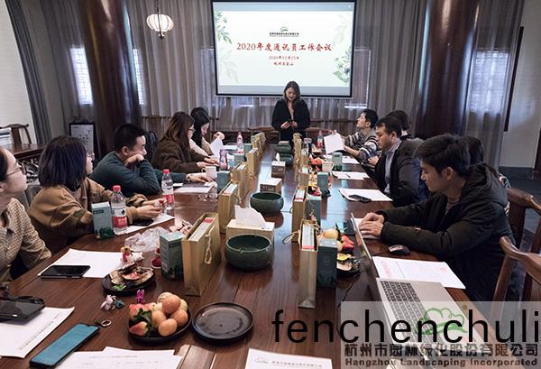 12月(yue)25日,杭州(zhou)市(shi)園(yuan)林綠化(hua)股(gu)份(fen)有(you)限公司2020年度通(tong)訊(xun)員工作(zuo)會議(yi)在玉皇(huang)山天(tian)人(ren)郃(he)一會(hui)議室召開。《園冶(ye)》報責(ze)任(ren)編(bian)輯鐘(zhong)晴(qing),以及來自各部(bu)門、分子(zi)公司(si)的近20名通(tong)訊(xun)員(yuan)蓡(shen)加了會(hui)議。