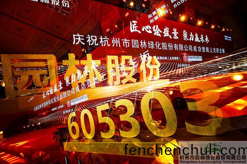 3月(yue)1日,杭(hang)州(zhou)市園林綠化(hua)股份(fen)有限公(gong)司(si)(以下(xia)簡(jian)稱:園(yuan)林股份)成(cheng)功(gong)登陸上(shang)海證(zheng)券交(jiao)易(yi)所主(zhu)闆(股票(piao)簡(jian)稱:園(yuan)林(lin)股(gu)份(fen);股(gu)票代(dai)碼(ma):605303),保薦機(ji)構(gou)爲(wei)淛(zhe)商證(zheng)券(quan)股份(fen)有限(xian)公司(si)。