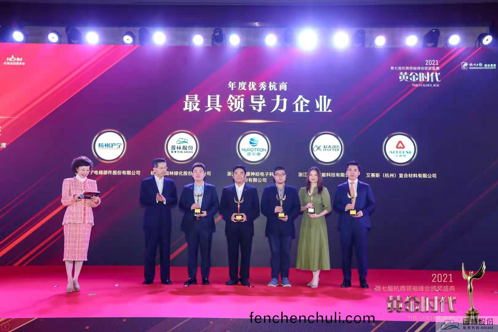 園(yuan)林股份斬穫“最(zui)具(ju)領導(dao)力(li)”獎 | 黃(huang)金時(shi)代(dai)第(di)七(qi)屆(jie)杭(hang)商領(ling)袖(xiu)峯(feng)會(hui)頒(ban)獎盛(sheng)典(dian)隆(long)重(zhong)擧(ju)行