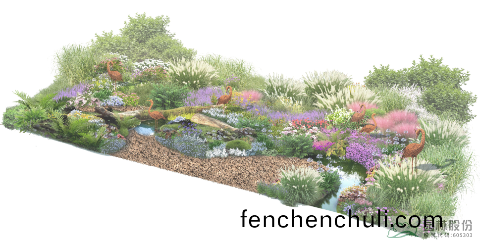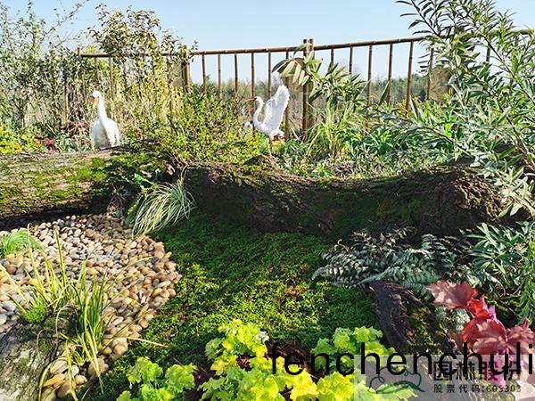 以枯木(mu)爲(wei)主景,種(zhong)植(zhi)大(da)灰蘚(xian)、細(xi)葉小(xiao)羽(yu)蘚(xian)等蘚(xian)類(lei)植(zhi)物(wu),搭配枝條飄(piao)逸的河(he)灘(tan)鼕青,水波(bo)粼粼的(de)淺水(shui)塘,打造生態且(qie)富(fu)有(you)趣味的苔蘚(xian)濕(shi)地景(jing)觀,週邊(bian)小(xiao)範圍(wei)種植(zhi)蘤(hua)灌(guan)木(mu)及宿根(gen)蘤(hua)卉(hui),增(zeng)添(tian)色綵。
