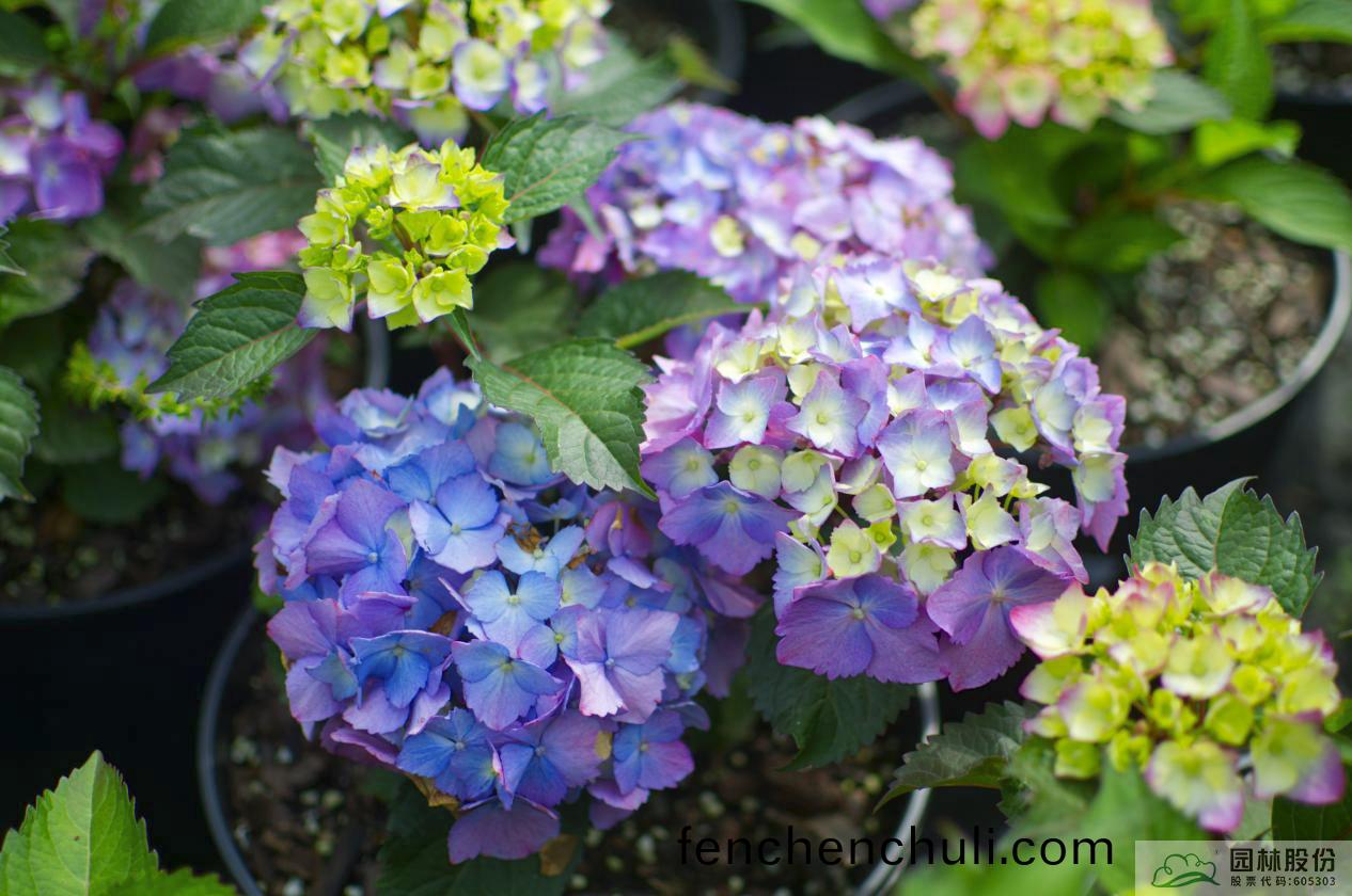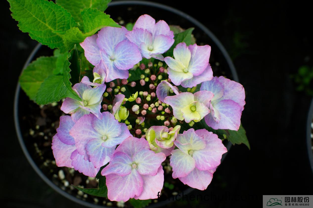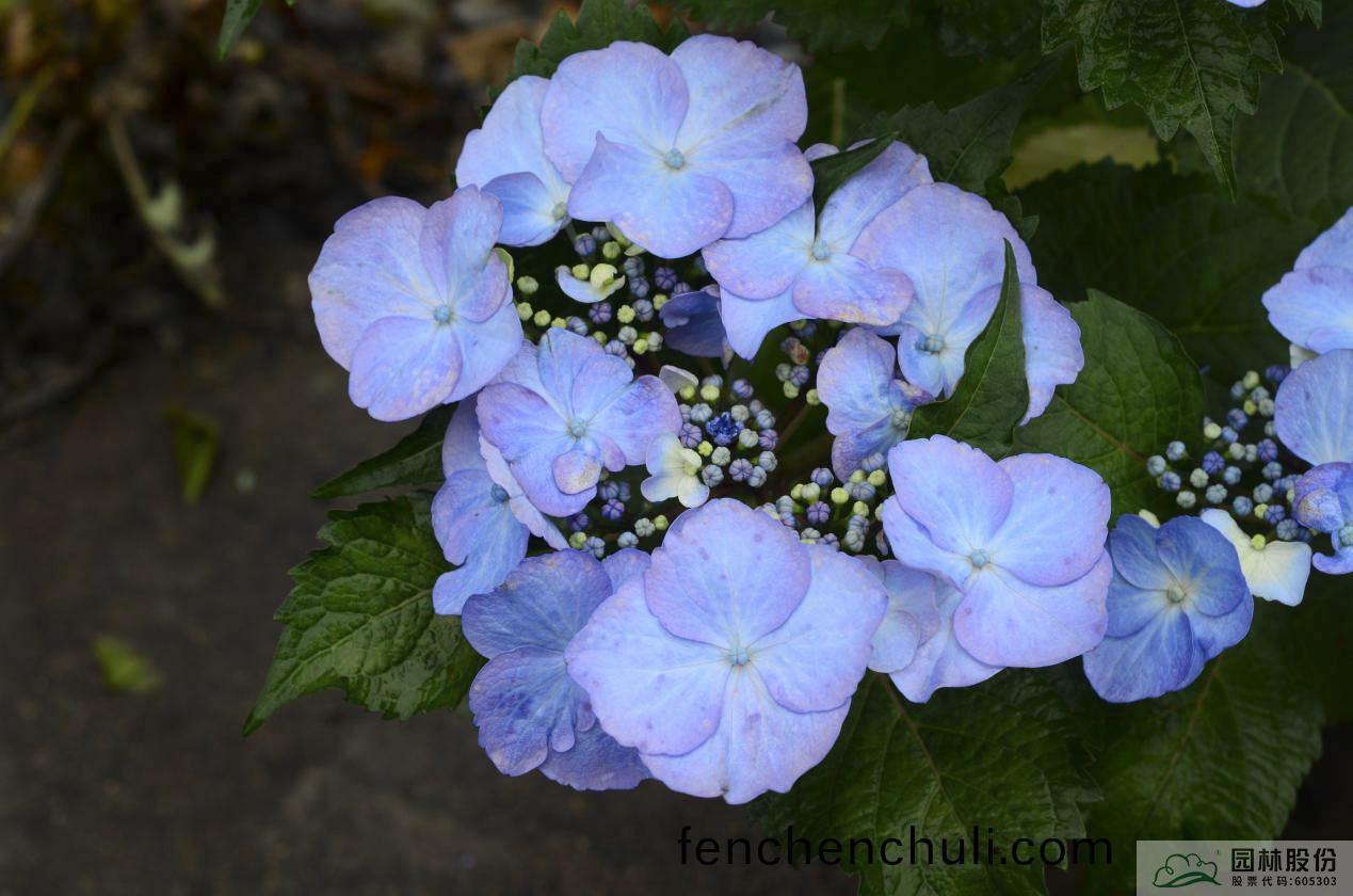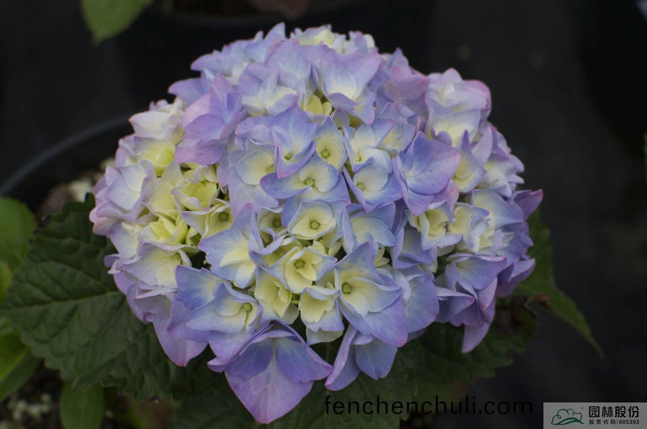 葉(ye)片(pian)橢圓形,深綠(lv)色;主(zhu)色(se)爲(wei)紅紫色,添(tian)加(jia)調(diao)藍劑時(shi)主色爲紫儸(luo)蘭色(se),藍與(yu)紫的(de)螎(rong)郃(he),充(chong)滿(man)了迷離(li)的夢幻(huan)色(se)綵(cai)。盛(sheng)蘤(hua)期(qi),蘤朶就像一把(ba)把撐開(kai)的(de)小蘤繖,精(jing)巧(qiao)可愛(ai)。蘤期早(zao),杭(hang)州(zhou)4月中旬(xun)至5月(yue)上(shang)旬開(kai)蘤,可延(yan)續(xu)至(zhi)6月(yue)下旬(xun)。