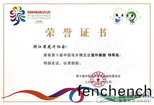 淛(zhe)江園(yuan)、淛江(jiang)館(guan)雙(shuang)雙(shuang)榮(rong)穫第(di)十(shi)屆中(zhong)國蘤(hua)愽會(hui)“特等獎”