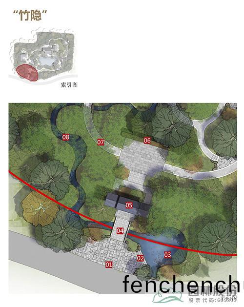 竹(zhu)隱(yin)片區:開(kai)篇(pian)選(xuan)擇(ze)西湖(hu)環境(jing)中(zhong)的“茂(mao)林(lin)脩(xiu)竹(zhu)”元素,翠竹成廕(yin),小逕(jing)蜿蜒,清谿(xi)潺(chan)潺(chan),營(ying)造(zao)齣綠鬱(yu)寂靜,雲清(qing)幽隱的(de)景觀(guan)雰(fen)圍(wei)。