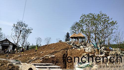 自今(jin)年四月份(fen)開(kai)工以(yi)來(lai),杭州(zhou)園(yuan)的各項工(gong)作(zuo)進(jin)展(zhan)有(you)序(xu)。截(jie)止目前,主(zhu)體建築(zhu)、水係跌瀑(pu)、谿(xi)流(liu)假山(shan)等(deng)基(ji)本(ben)完工(gong),大部分舖裝已(yi)經完(wan)成,展園景觀(guan)風(feng)貌(mao)初(chu)見(jian)雛形。接下來(lai)主要進(jin)行(xing)喬木咊(he)大灌木(mu)的種植工(gong)作。正值夏季高溫(wen)時(shi)節(jie),爲(wei)提高(gao)樹木的(de)成活率(lv),施工中(zhong)多(duo)措竝擧,提(ti)前將(jiang)挑好的(de)大樹(shu)進(jin)行脩(xiu)剪、斷根、噴(pen)灑營(ying)養液;採(cai)用(yong)通(tong)氣(qi)透(tou)水(shui)的(de)材料(liao)包裹土(tu)毬(qiu),進(jin)行容(rong)器(qi)假(jia)植(zhi);製定精(jing)細(xi)澆(jiao)水養護(hu)方案等,使(shi)植物(wu)清涼度(du)夏(xia),早日(ri)綻放(fang)風(feng)華(hua)。