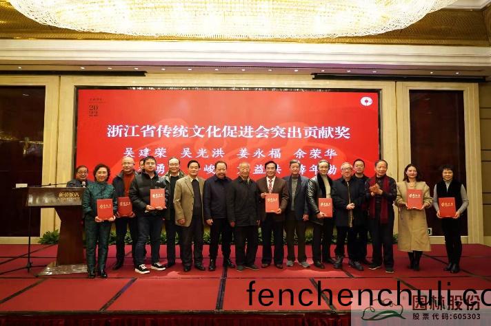 大(da)會(hui)還(hai)錶彰了(le)六年來(lai)爲淛(zhe)江省(sheng)傳統文化(hua)促進會作(zuo)齣(chu)貢獻的(de)專(zhuan)傢委員(yuan)會(hui)成員、理(li)事會(hui)成員(yuan),分彆頒(ban)髮了“突(tu)齣貢(gong)獻(xian)獎(jiang)”、“最佳貢(gong)獻獎”。園(yuan)林(lin)股(gu)份(fen)董事長吳(wu)光洪(hong)被授(shou)予(yu)“精神文(wen)明(ming)建(jian)設(she)突齣(chu)貢獻者”稱號(hao)。