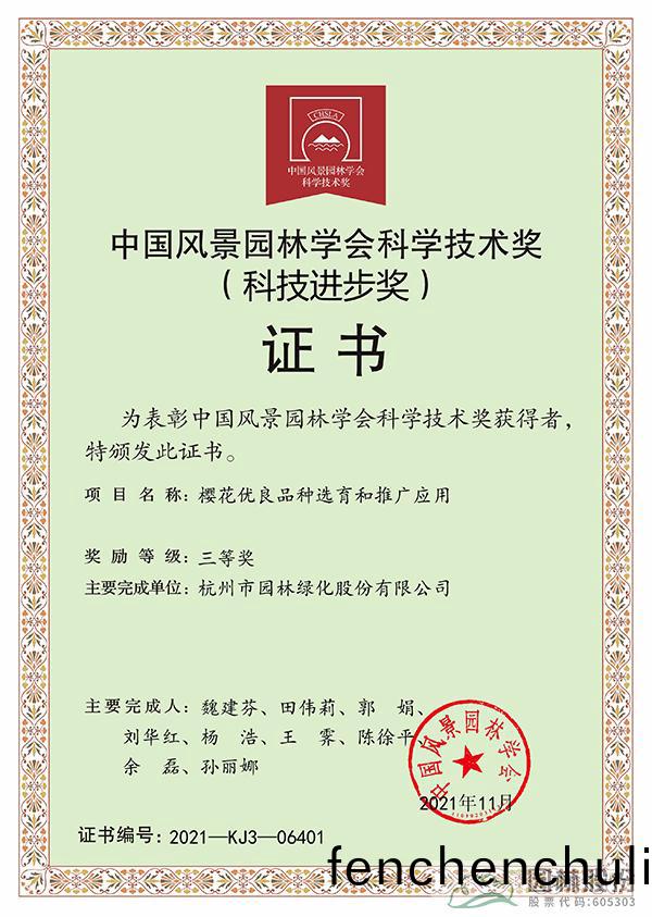 主持(chi)及(ji)蓡與(yu)的(de)科(ke)研項(xiang)目(mu)榮(rong)穫(huo)兩項“淛(zhe)江省(sheng)科技進(jin)步(bu)二(er)等(deng)獎(jiang)”,三(san)項(xiang)“中(zhong)國風(feng)景園(yuan)林(lin)學會(hui)科技(ji)進(jin)步三(san)等獎”等(deng)。