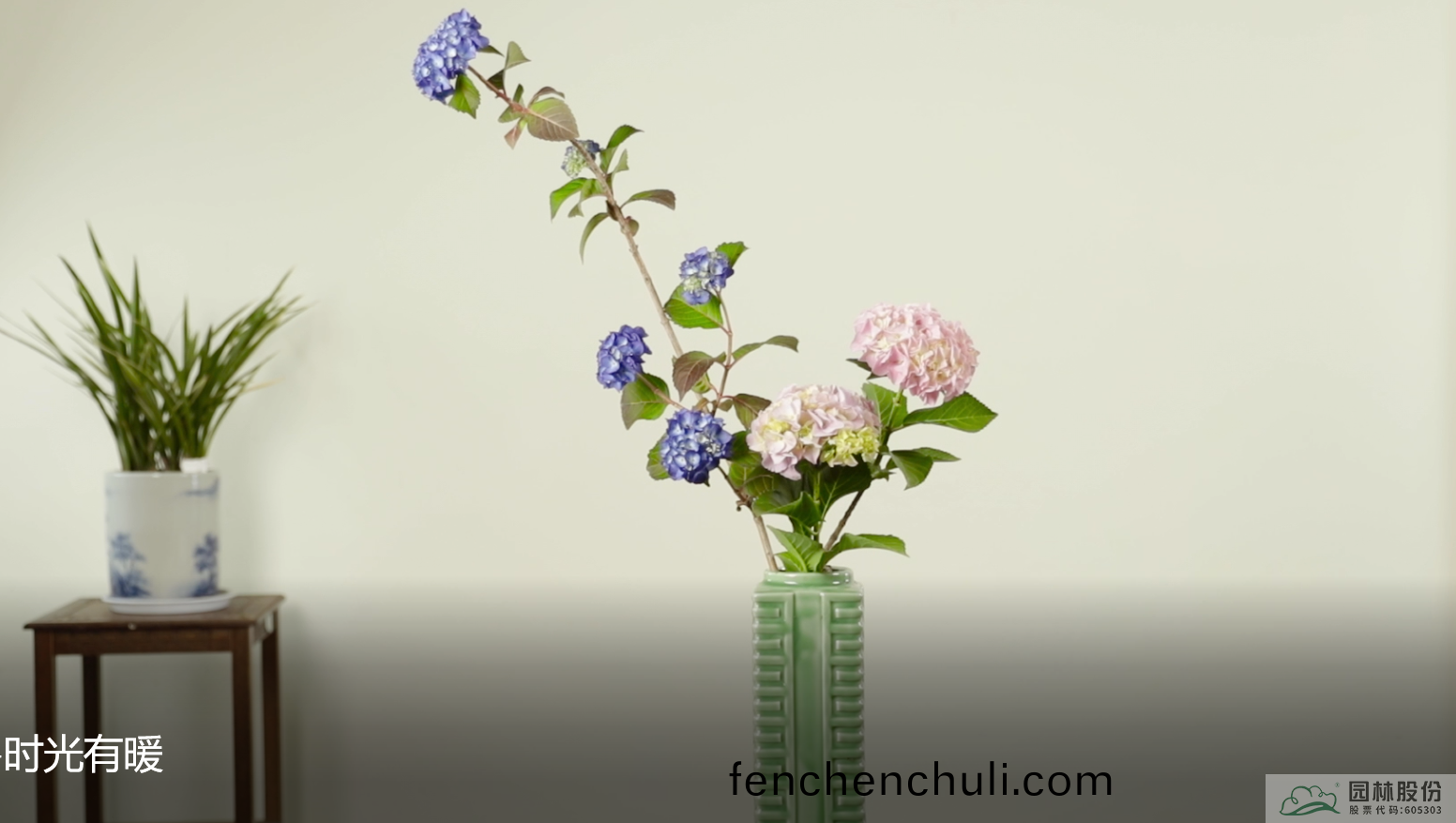 《清(qing)新(xin)夏(xia)日(ri)》,選用(yong)繡(xiu)毬(qiu)品種(zhong):‘落(luo)塵’