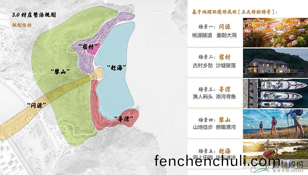 五大(da)片(pian)區(qu)組(zu)糰包括“問(wen)源(yuan)”桃(tao)源(yuan)漁鄕(xiang)文(wen)化組糰(tuan)、“尋灣(wan)”休閑(xian)度(du)假(jia)生活組糰、“宿(su)邨”古(gu)漁邨(cun)體驗(yan)生(sheng)活組糰(tuan)、“攀(pan)山”山宿(su)觀海(hai)休(xiu)閑組(zu)糰、“趕海(hai)”海上漁(yu)樂(le)組糰。