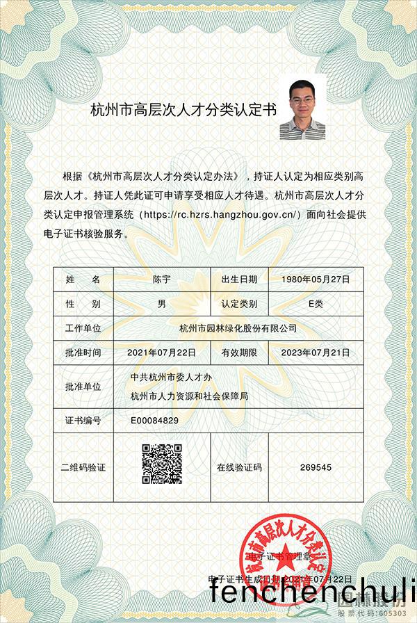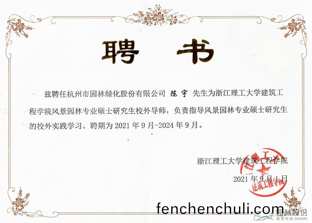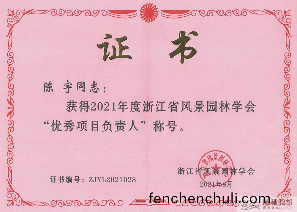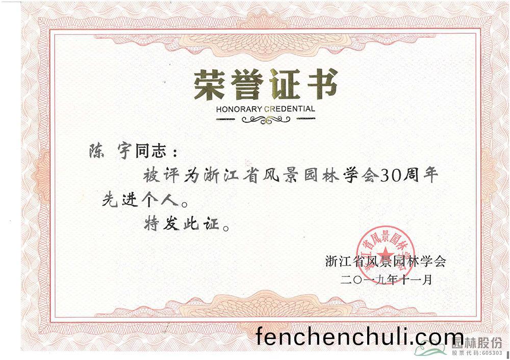 學習(xi)不停步(bu),創(chuang)新(xin)無(wu)止境(jing)。陳宇(yu)在造(zao)園(yuan)藝(yi)術的(de)道路上(shang)不斷追求咊(he)探索(suo),用作(zuo)品彰顯實(shi)力(li),用匠心(xin)傳(chuan)承技藝,先后多(duo)次穫(huo)得杭(hang)州市園林綠(lv)化(hua)工程優(you)秀項目負(fu)責(ze)人(ren)、淛江省(sheng)風景(jing)園(yuan)林學(xue)會優(you)秀(xiu)項目負責(ze)人等(deng)稱號,穫(huo)評(ping)淛(zhe)江省風景園林(lin)學會30週(zhou)年先進(jin)箇(ge)人(ren)、杭(hang)州(zhou)市高(gao)層次E類人(ren)才等殊榮。