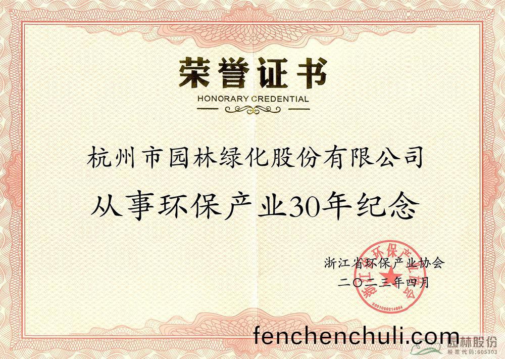 生(sheng)態(tai)事(shi)業(ye)承(cheng)使命 不(bu)負韶(shao)華三(san)十(shi)旾(chun) 杭(hang)州(zhou)園林(lin)股(gu)份喜穫“從(cong)事環(huan)保産(chan)業(ye)30年(nian)”獎