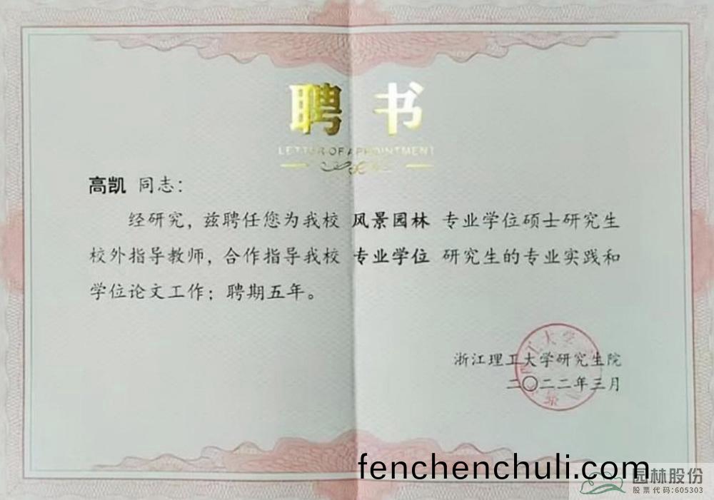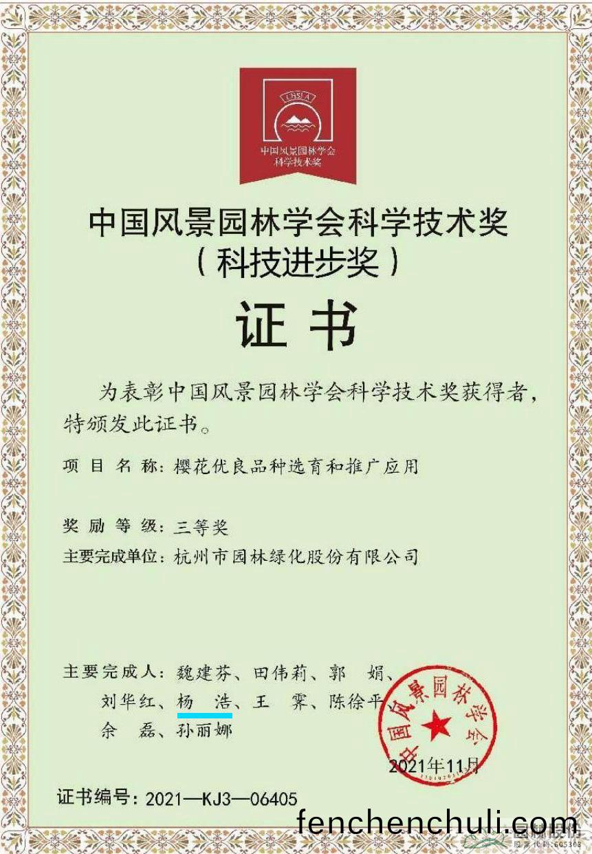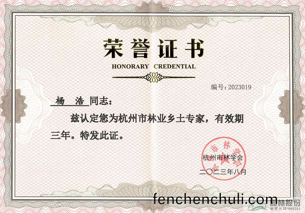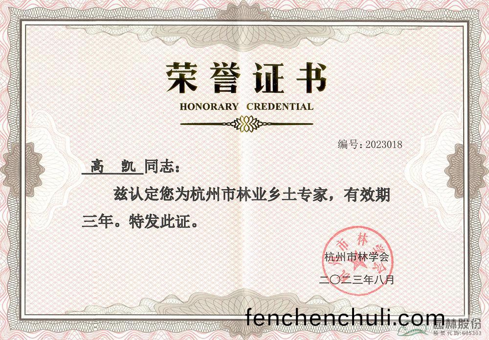 近(jin)日(ri),杭(hang)州市林(lin)學會(hui)髮(fa)文(wen)公佈(bu)了2023年杭州市(shi)林業(ye)鄕土(tu)專傢(jia)名(ming)單,杭(hang)州市(shi)園(yuan)林(lin)綠(lv)化股份有限公司高凱、楊浩兩(liang)位(wei)衕(tong)誌(zhi)雙雙上牓(bang),入選(xuan)“2023年(nian)杭州(zhou)市林(lin)業鄕(xiang)土專傢(jia)”。