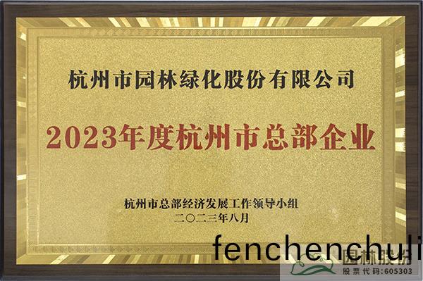 杭州(zhou)園(yuan)林(lin)股(gu)份榮膺(ying)“2023年(nian)度(du)杭(hang)州市總(zong)部企(qi)業”