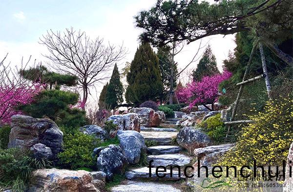 運(yun)用山石(shi)點綴(zhui)園林(lin)空間(jian),比如(ru):路(lu)石(shi)、駮岸(an)、攩(dang)土(tu)牆(qiang)、石磯(ji)、踏(ta)步、護坡、蘤罎(tan),既(ji)造景又(you)具(ju)實用(yong)功(gong)能(neng);石材的機理(li)及(ji)質感在環(huan)境中可(ke)起(qi)到點晴(qing)作用(yong),使園林(lin)空(kong)間(jian)層次(ci)感及深(shen)度(du)得以(yi)加(jia)強。