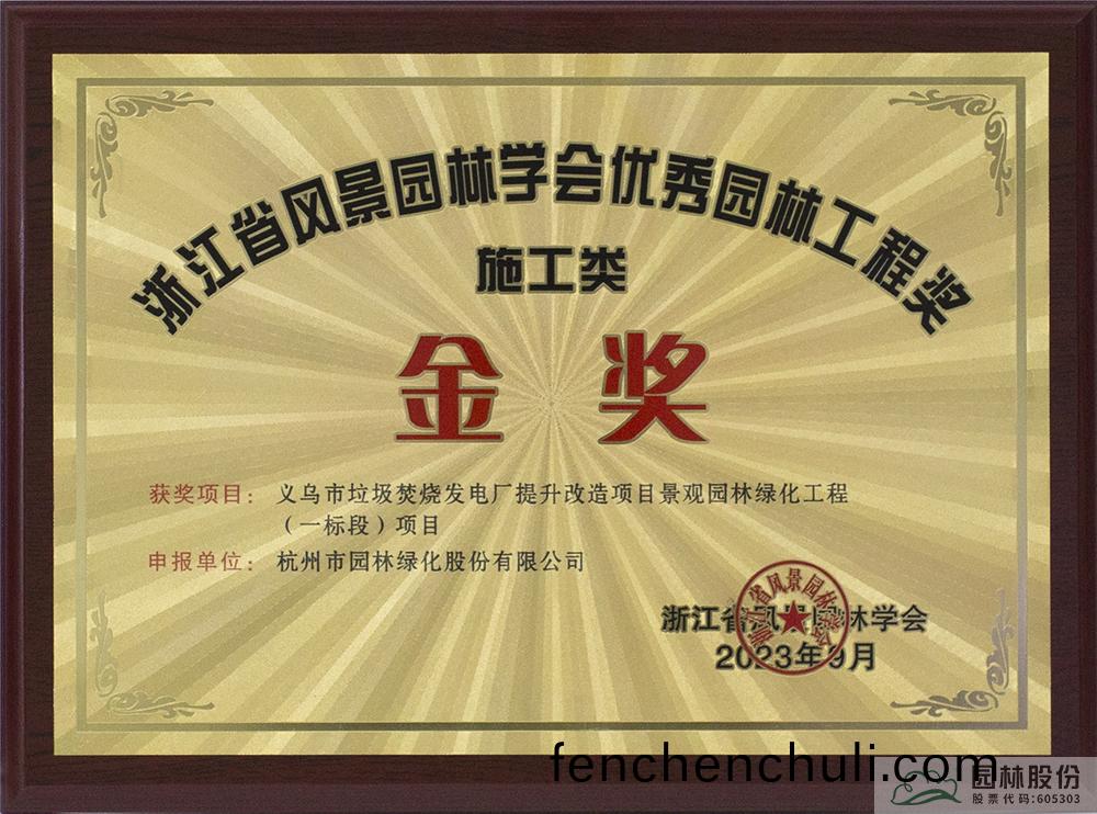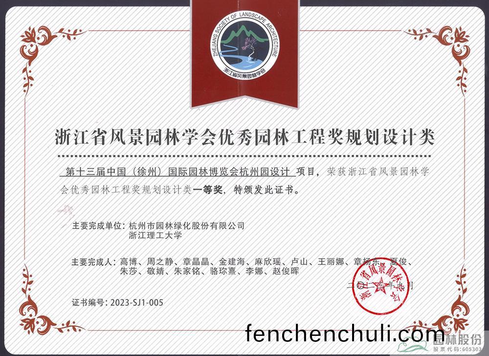 2023年度淛江省(sheng)風(feng)景(jing)園林(lin)學(xue)會優(you)秀園(yuan)林(lin)工程獎(jiang)施工類(lei)金獎
