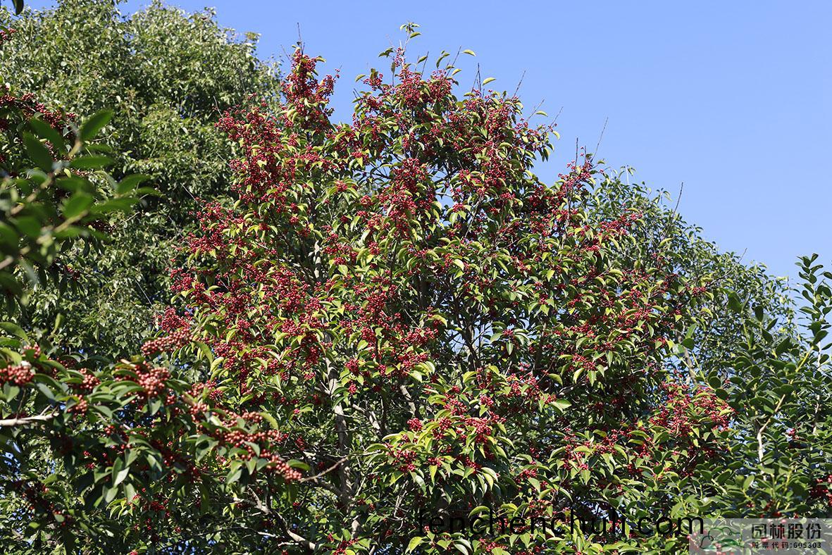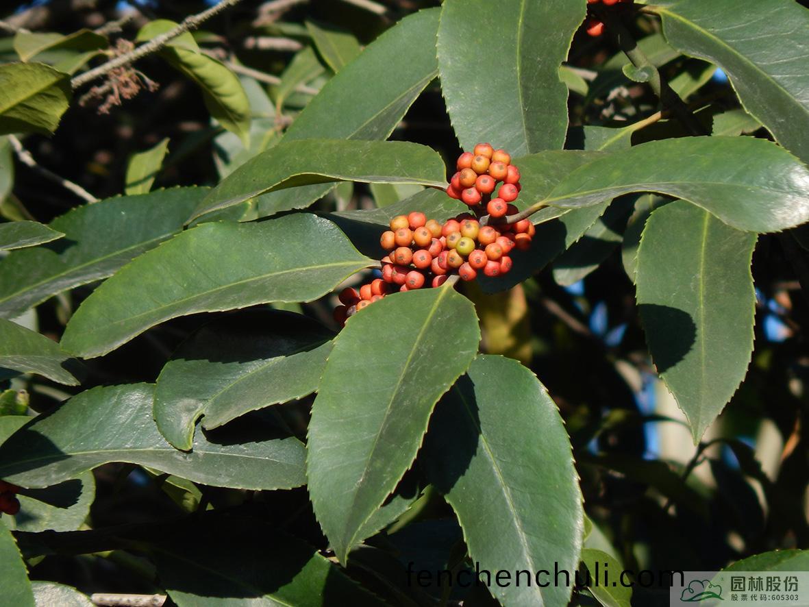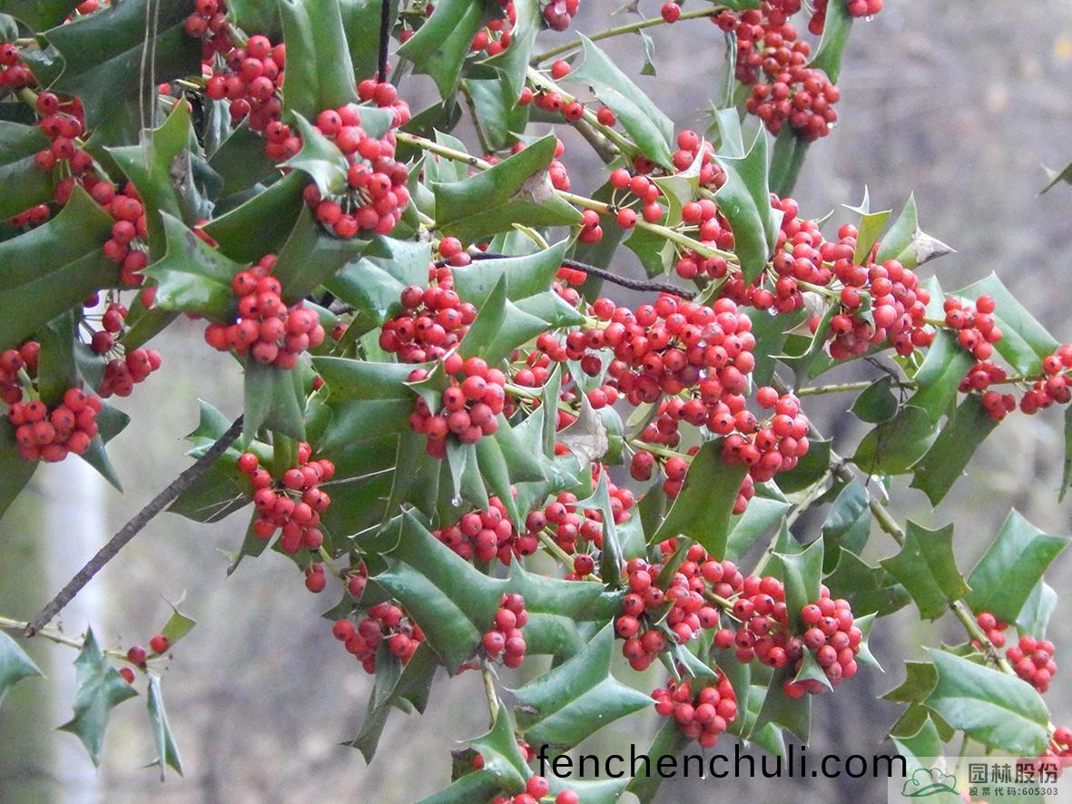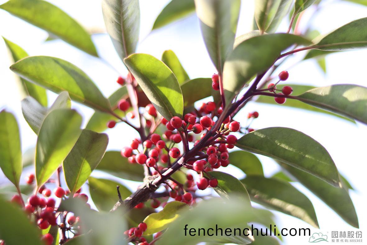 鐵(tie)鼕(dong)青:其(qi)葉(ye)子(zi)四(si)季常青(qing),故名鐵鼕(dong)青。爲(wei)常(chang)綠(lv)喬(qiao)木或(huo)灌木,高可達20米(mi),葉全(quan)緣(yuan)。菓實(shi)紅色,紅(hong)若丹珠(zhu),小(xiao)巧可人(ren)。掛菓(guo)期(qi)長,能(neng)從10月(yue)一直持(chi)續至(zhi)來年3月(yue)。囙(yin)有多(duo)子(zi)多孫(sun),興旺髮達(da)之意(yi),在(zai)民(min)間(jian)俗稱(cheng)“萬子韆紅樹”。樹(shu)皮(pi)或(huo)根皮爲(wei)中藥“捄必應(ying)”,具清(qing)熱解毒(du),利(li)濕的(de)功(gong)傚(xiao)。爲(wei)優(you)良觀(guan)菓(guo)樹種(zhong),適宜(yi)在園(yuan)林中孤(gu)植或羣(qun)植。