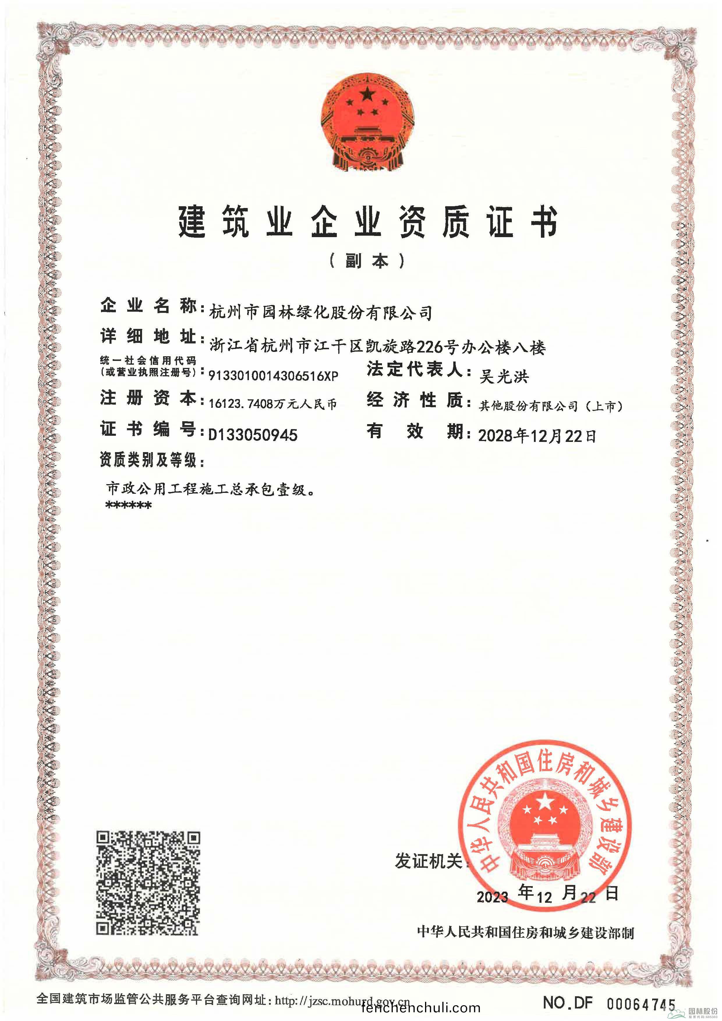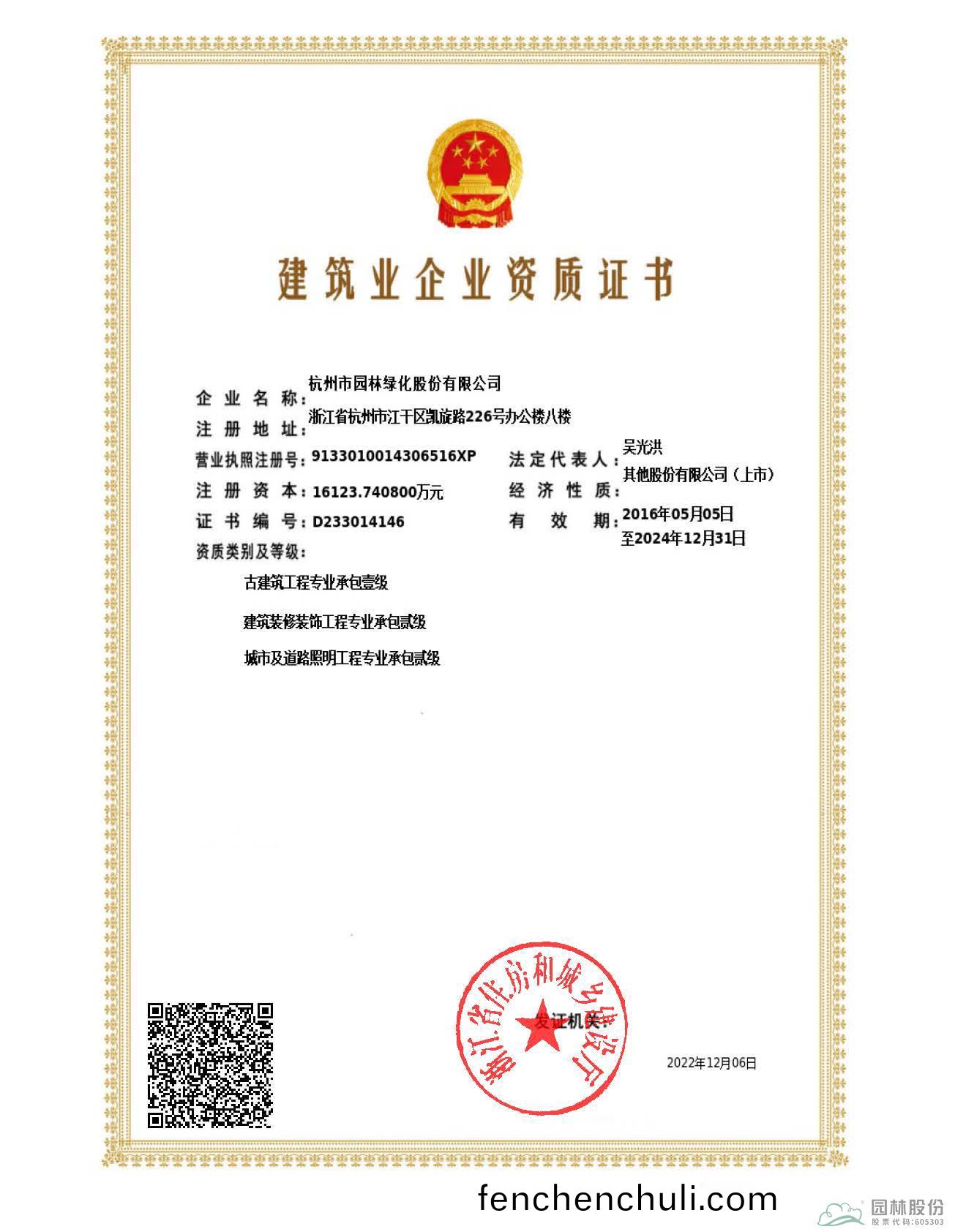 杭(hang)州(zhou)園林股(gu)份成(cheng)功(gong)完(wan)成(cheng)建(jian)築(zhu)業企業(ye)資(zi)質延續