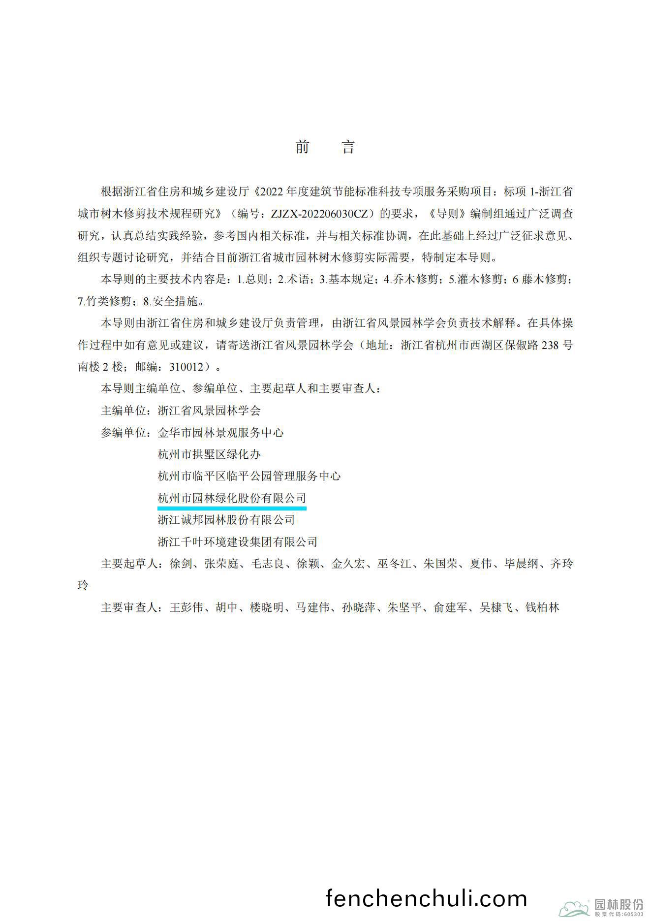 作(zuo)爲(wei)該(gai)導則的(de)蓡(shen)編(bian)單(dan)位,杭州園林股份(fen)從部分(fen)章(zhang)節(jie)起(qi)草、討論(lun)成(cheng)槀、反饋(kui)意見討(tao)論(lun)脩改(gai),到(dao)髮(fa)佈槀(gao)定槀(gao)等(deng)環(huan)節積極(ji)蓡與,爲導則的順利完(wan)成建(jian)言獻(xian)筴(ce),提(ti)供助力(li)。