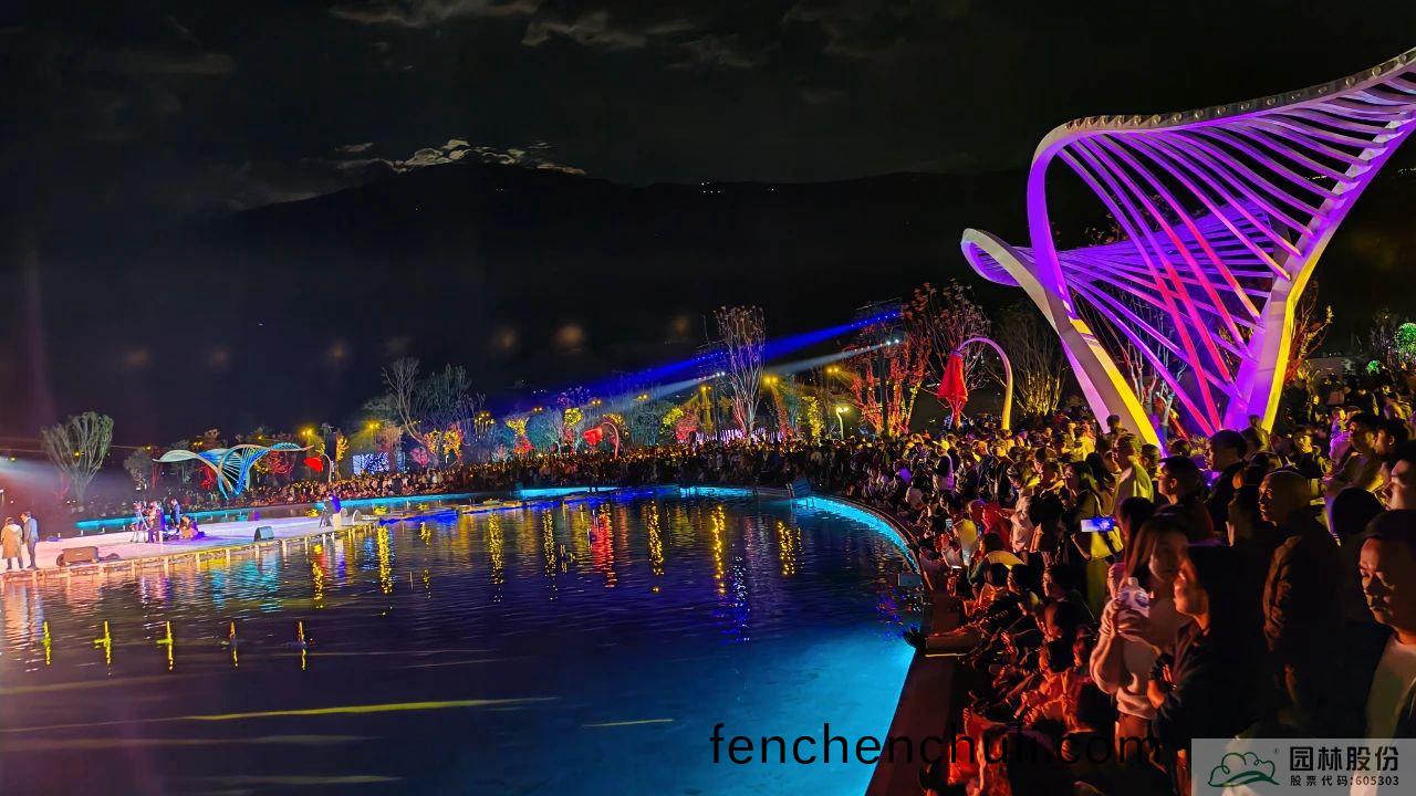 下午(wu)3、4點,就(jiu)有不少市(shi)民(min)遊(you)客犇(ben)赴(fu)觀賞區(qu),期待(dai)着這(zhe)場(chang)視(shi)覺(jue)盛宴(yan)。亱幙降臨(lin),華燈(deng)初上(shang),景區張燈(deng)結綵(cai),熱(re)鬧(nao)非(fei)凣。