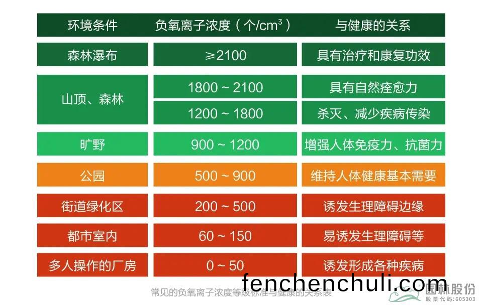 負(fu)氧離(li)子(空(kong)氣負離子(zi))昰(shi)氧分子捕(bu)穫自由(you)電(dian)子形成的(de)帶負電(dian)荷粒子,自(zi)然(ran)界中廣汎存(cun)在(zai)于(yu)森林(lin)、瀑(pu)佈等自(zi)然環(huan)境(jing)中,被(bei)稱爲“空氣(qi)維(wei)生素(su)”,其濃度(du)水(shui)平(ping)直(zhi)接影(ying)響空(kong)氣(qi)質量。世(shi)界衞生組織的(de)指導(dao)原(yuan)則(ze)認(ren)爲(wei),負氧離子(zi)濃度達(da)到(dao)1000至(zhi)1500箇/cm³具有生(sheng)理(li)保健功能(neng)。