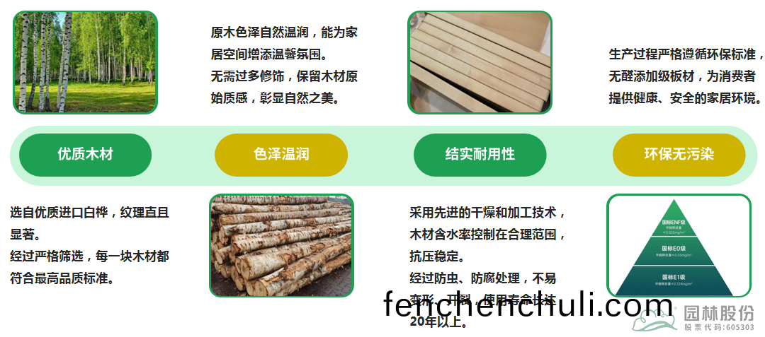 2.2全程無(wu)醛工(gong)藝(yi):從伐(fa)木、麤加工到深加工,採用(yong)“俄材迴流(liu)”産業鏈糢式,實現(xian)零(ling)甲醛(quan)添加(jia)。