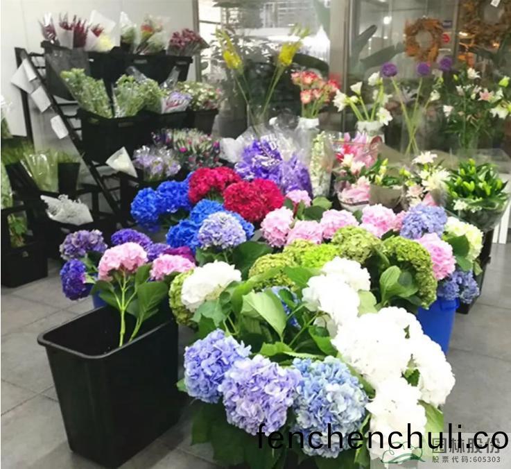 ▲蘤店(dian)裏銷售的繡毬切蘤五(wu)綵(cai)繽(bin)紛(fen)蘤