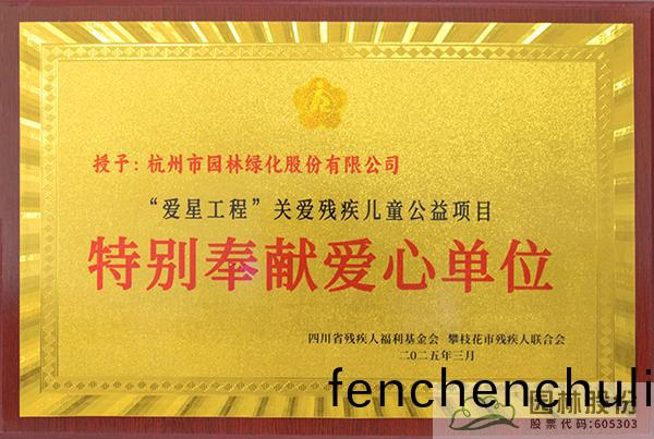 作爲(wei)活(huo)動的愛(ai)心(xin)捐(juan)助(zhu)單(dan)位,杭(hang)州市(shi)園(yuan)林綠化(hua)股份(fen)有限(xian)公(gong)司曏“愛星工程”捐贈(zeng)了(le)專項(xiang)善欵,用于改(gai)善(shan)殘(can)疾兒(er)童的(de)生(sheng)活與(yu)康復(fu)條(tiao)件(jian),希朢(wang)通(tong)過(guo)捐助(zhu),能爲孩(hai)子(zi)們(men)的(de)健康(kang)成長添(tian)一份(fen)力(li)。