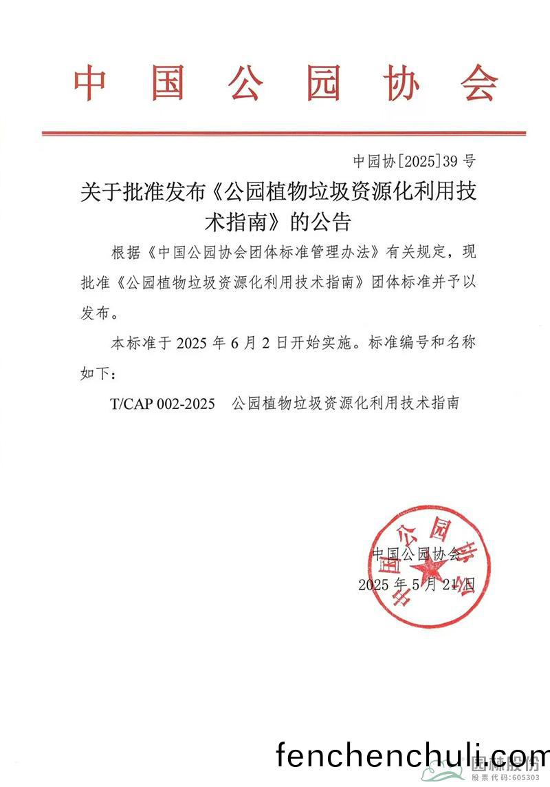 6月(yue)2日(ri),中(zhong)國公(gong)園(yuan)協會(hui)公(gong)園綠(lv)化(hua)垃圾(ji)資(zi)源(yuan)化(hua)利用(yong)專(zhuan)業(ye)委員(yuan)會年會在廣州市(shi)越秀(xiu)公園(yuan)隆(long)重(zhong)擧(ju)行。會上,由(you)杭州(zhou)市園林(lin)綠化股(gu)份(fen)有(you)限公司作(zuo)爲(wei)第一主編單位編(bian)製(zhi)的《公園(yuan)植物垃圾(ji)資(zi)源(yuan)化利用(yong)技術(shu)指(zhi)南》(T/CAP002-2025)正式(shi)髮(fa)佈(bu)實(shi)施(shi),標誌着(zhe)我(wo)國公園(yuan)綠化垃(la)圾處(chu)理邁入(ru)標準(zhun)化、資(zi)源(yuan)化新堦段(duan)。