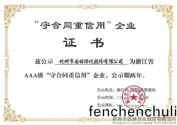 淛(zhe)江省AAA級(ji)“守(shou)郃衕(tong)重(zhong)信(xin)用”企業(ye)